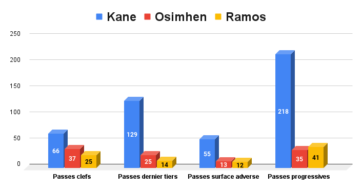 Dans le jeu de passe, Kane ne trouve pas son égal avec Osimhen et Ramos. Il est plus technique, plus fin, plus créateur. Il fait le jeu, quand les autres sont davantage à la finition pure.