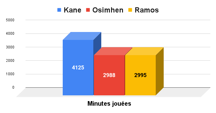 Défensivement, les trois joueurs ont leurs qualités. Kane est plus récupérateur de ballon que les deux autres alors que Ramos est plus adeptes des dégagements et des tacles par rapport à son activité offensive. Osimhen contre beaucoup de ballons, car il exerce un bon pressing sur l’adversaire.