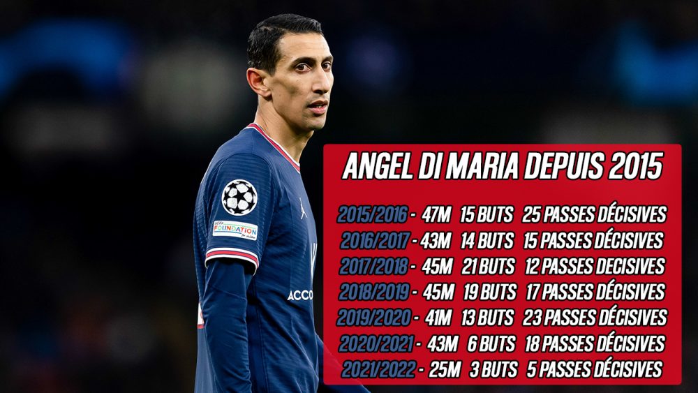 On le disait, il n’a plus les mêmes statistiques depuis deux ans. Si l’on regarde ses 5 premières saisons, il fait carton plein en matière de buts et de passes décisives. Lors de ses 5 premières saisons, c’est minimum 10 buts et 10 passes décisives, ce sont des statistiques qui montrent ce qu’il a pu apporter. Sur les deux dernières saisons, il n’a pas dépassé les 6 buts et si la saison 2020/2021, il avait fait 18 passes décisives, cette saison, il n’en a fait que 5 pour 3 buts. Il y a l’explication Lionel Messi. La Pulga joue au même poste et Di Maria a fait les frais de l’arrivée de son ami. Mais il a tout de même pu jouer, Neymar s’étant blessé durant plusieurs mois, Di Maria n’a pas su en profiter pour se montrer.