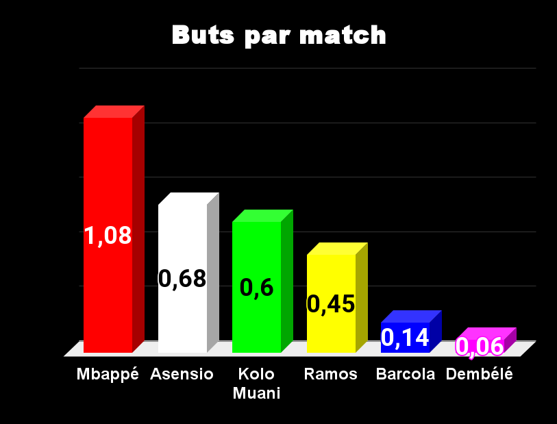 Ici, pas de doutes, le maitre, c’est Mbappé, l’un des meilleurs au monde, largement. Avec plus d’un but par match, il est presque hors concours. On note que Barcola et Dembélé sont largement en dessous dans ce domaine. Ramos, malgré le fait qu’il n’est jamais utilisé, affiche des statistiques intéressantes.