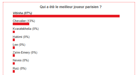À la fin des matchs du Paris Saint-Germain durant le mois de novembre, comme nous le faisons toujours désormais (en s’appuyant sur les podiums de l’élection du joueur de chaque match), nous avons demandé de voter pour le « joueur du mois ». Vitinha (milieu de 25 ans) s’est imposé.