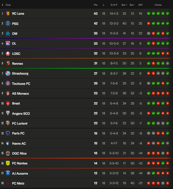 Ligue 1 – Ce qu’on retient de la 18e journée : Lens continue, le Paris FC respire