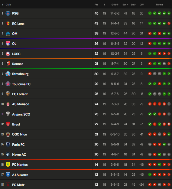Lors de la 19e journée de Ligue 1 2025-2026, le Paris Saint-Germain s’est imposé 0-1 contre Auxerre à l’Abbé-Deschamps (résumé vidéo Auxerre/PSG). Un résultat qui permet de récupérer la première place du championnat.