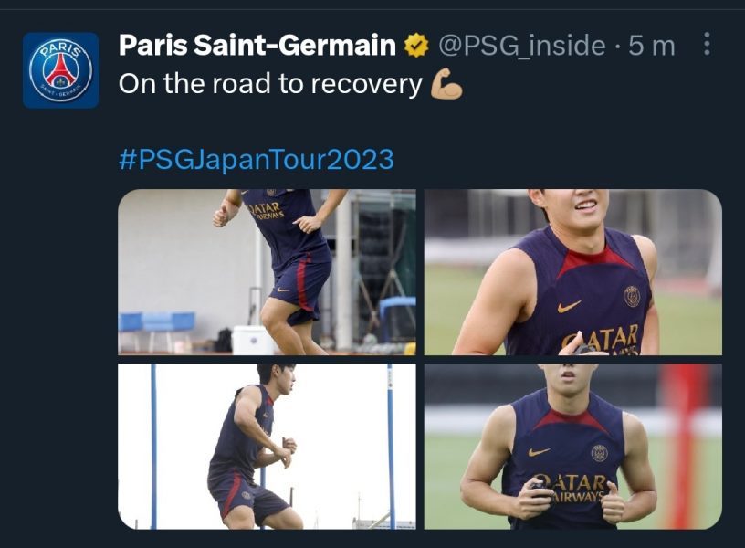 Ce vendredi, le Paris Saint-Germain affronte le Cerezo Osaka (5e du championnat japonais) au Stade Nagai dans le cadre d’un match amical (coup d’envoi à 12h20 heure française, diffusion sur Amazon Prime). Après l’entraînement de ce jeudi, le PSG a fait savoir que Lee Kang-In (ailier de 22 ans) a pu retrouver le travail sur le terrain aujourd’hui alors qu’il avait quitté le match vendredi dernier contre Le Havre avec une douleur à la cuisse.
