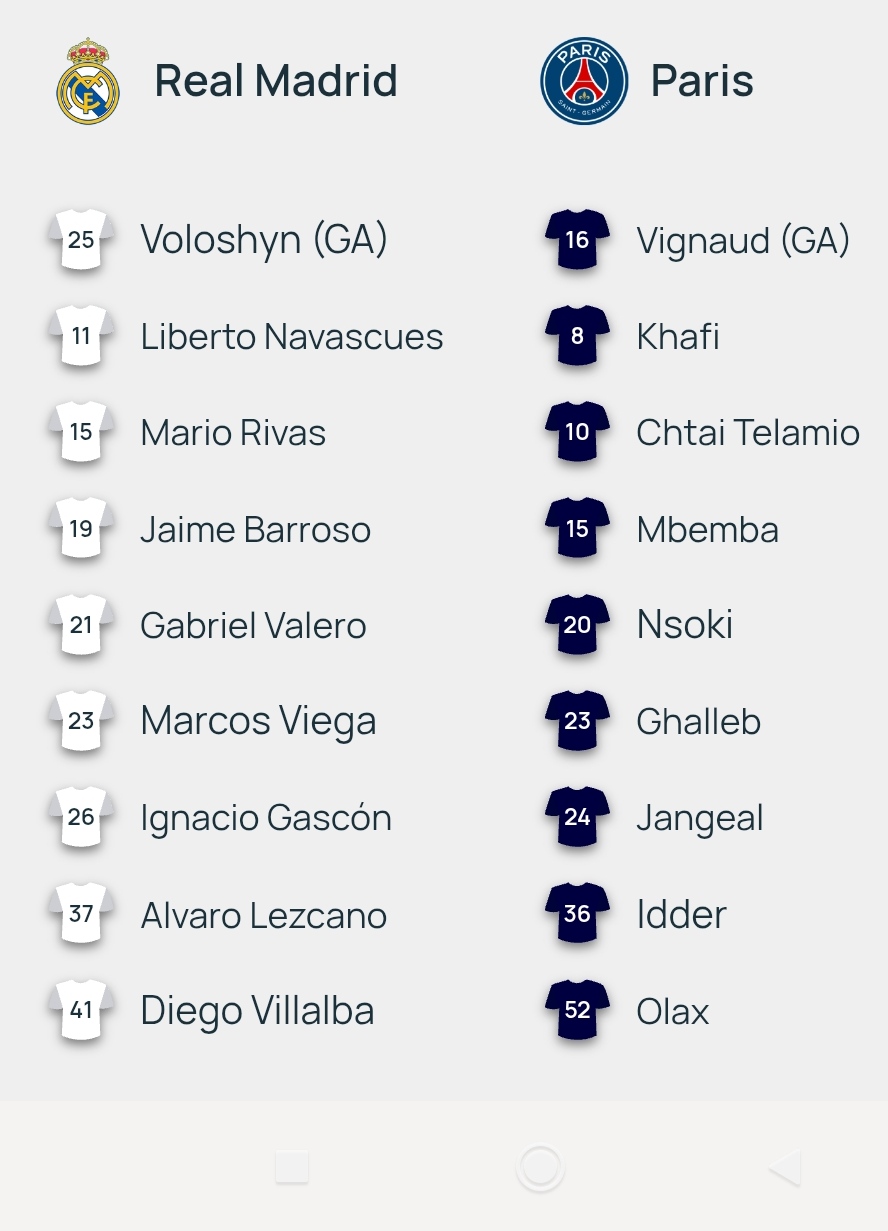 Real Madrid/PSG – Les équipes officielles en Youth League