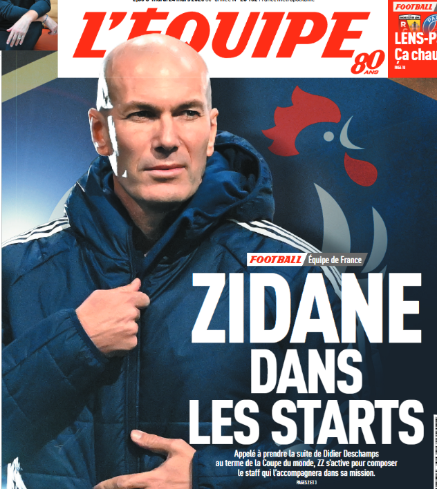 Ce mardi 24 mars, la presse française (sur l’aspect sportif) s’est concentrée du côté du Paris Saint-Germain sur l’avenir du Parc des Princes, avec l’idée d’un rachat relancée par l’élection d’Emmanuel Grégoire comme maire de Paris et le report possible de Lens/PSG. On trouve aussi l’Equipe de France : Zinedine Zidane se prépare pour remplacer Didier Deschamps à l’issue de la Coupe du Monde 2026, alors que les Bleus sont aux Etats-Unis pour la trêve de mars en préparation de ce Mondial.