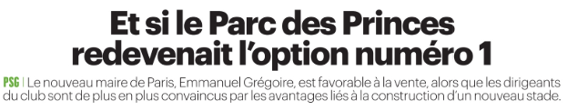 Emmanuel Grégoire a répété durant sa campagne qu’il est prêt à négocier la vente du Parc des Princes et il y a un projet d’aménagement qui existe, alors l’idée semble revenir pour éviter un départ du PSG vers Poissy ou Massy afin de construire un nouveau stade. Attention, certains s’emballent un peu trop vite alors que de grandes difficultés sont toujours bien réelles, notamment : espace limité, opposition des riverains et risques liées à de lourds travaux au-dessus du périphérique. Un départ reste tout à fait possible, attendons de voir la situation du dossier.