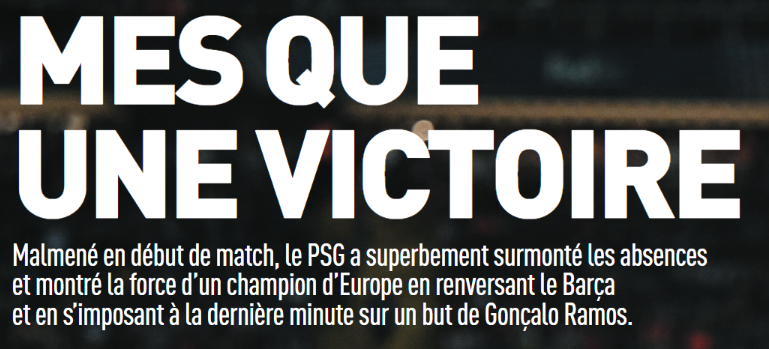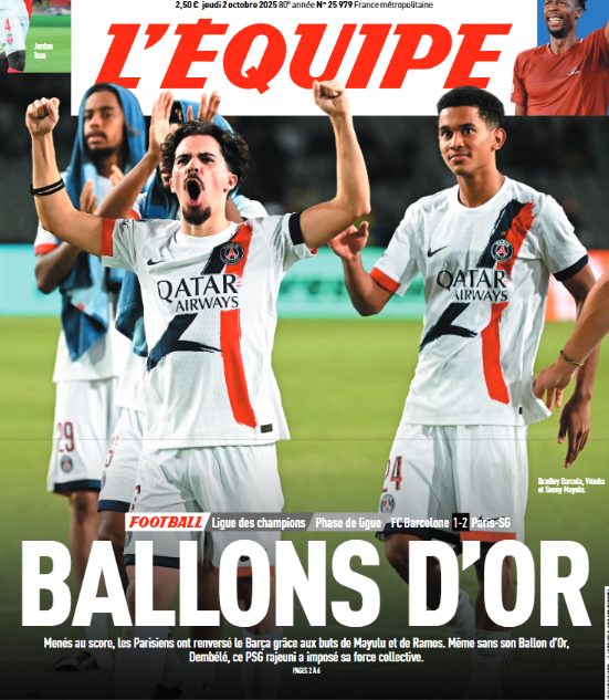 Revue de presse : Barcelone/PSG, Paris domine le Barça avec ses Titis et latéraux