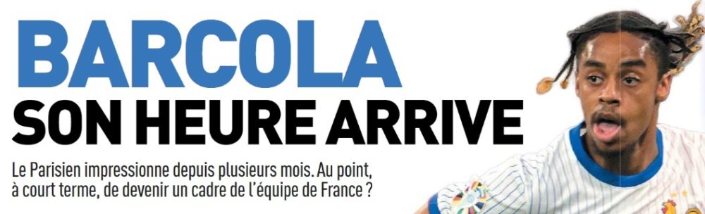 Ce mardi 3 septembre, la presse française (sur l’aspect sportif) s’est concentrée du côté du Paris Saint-Germain sur le fait que Bradley Barcola (attaquant de 22 ans) devrait avoir sa chance en Equipe de France durant la trêve de septembre qui a démarré cette semaine. Warren Zaïre-Emery (milieu de 18 ans) devrait aussi obtenir une opportunité, mais sa place est moins acquise face à la concurrence même s’il y a des absents.