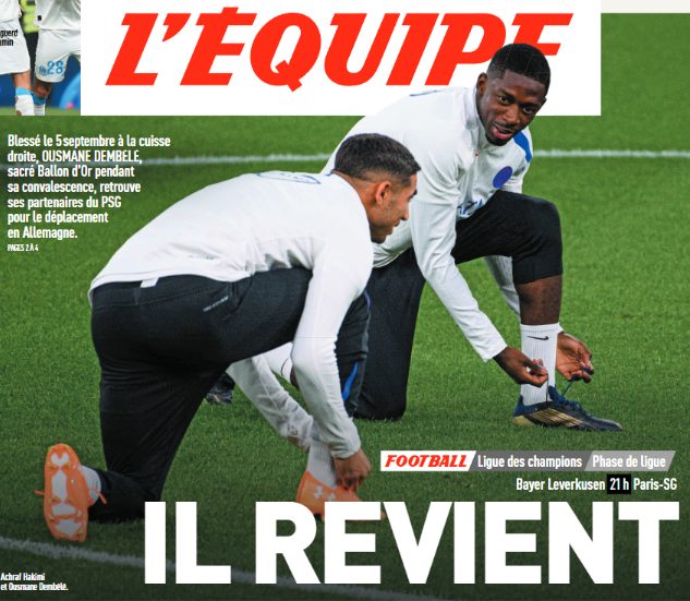 Revue de presse : Bayer Leverkusen/PSG, Dembélé, Pacho et Chevalier