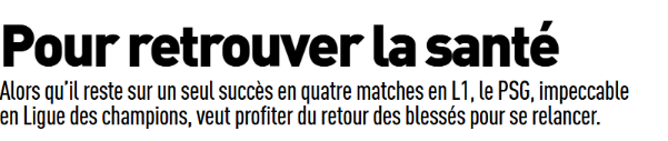 Pour cela, Paris devrait pouvoir s’appuyer sur quelques forces en plus. Ce qui ne peut que faire du bien, même si le groupe a montré pendant les absences qu’il a des ressources. Attention, aussi, il y aura de la prudence sur les retours et les joueurs risquent de ne pas être à 100%. Reste à espérer que les bonnes nouvelles se confirmeront et que l’on retrouvera un PSG un peu plus régulier.