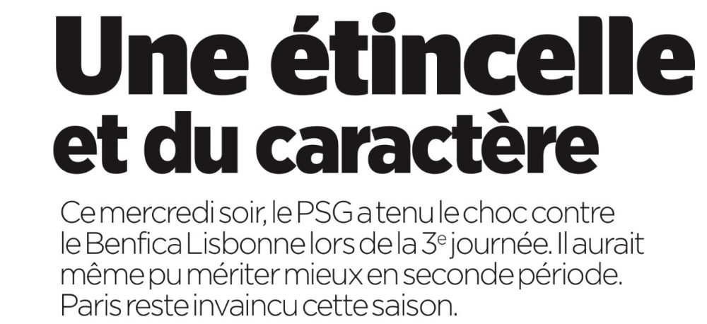 C’est une belle façon de lire ce match entre Benfica et le PSG. Paris a eu du caractère et ne s’est pas effondré après 20 premières minutes extrêmement compliquées. Il y a eu le but, exceptionnel dans sa conception et une ultra domination en seconde mi-temps. Paris méritait surement son match nul tant Donnarumma a dû faire des arrêts en première période.