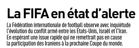 Ce mardi 3 mars, la presse française (sur l’aspect sportif) s’est concentrée du côté du Paris Saint-Germain sur rien de direct, mais on trouve les inquiétudes autour de la Coupe du Monde 2026, prévue aux Etats-Unis, au Mexique et au Canada cet été (11 juin au 19 juillet). La faute au conflit avec l’Iran qui est lancé depuis 4 jours, un pays qui plus est qualifié pour le Mondial.