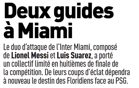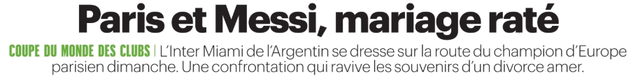 Ce mercredi 25 juin, la presse française (sur l’aspect sportif) s’est concentrée du côté du Paris Saint-Germain sur la suite de la Coupe du Monde des Clubs 2025 avec le 8e de finale face à l’Inter Miami ce dimanche à 18h. Il faudra gérer la fatigue physique, ainsi que des retrouvailles avec Lionel Messi (attaquant de 38 ans passé au PSG de 2021 à 2023). Cela avec Flamengo ou le Bayern Munich en quart de finale.