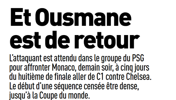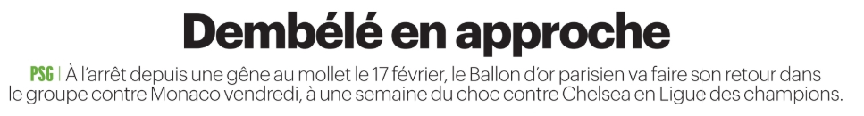 Revue de presse : Dembélé espéré pour PSG/Monaco et pas seul