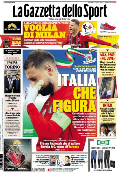 Du côté de la presse étrangère, Marca et AS ont titré sur Aurélien Tchouaméni qui confirme les discussions avec Kylian Mbappé, qui aurait juste demandé s’il venait sur Paris. La réponse du milieu de terrain, « je veux jouer à Madrid ». Au moins c’est clair. Du côté de l’Italie, c’est le naufrage contre l’Allemagne qui est au cœur des préoccupations. Gianluigi Donnarumma a vécu une soirée cauchemar, ce qui n’est pas une grande nouvelle pour le PSG qui pourrait récupérer un gardien abattu mentalement après tous ces revers.