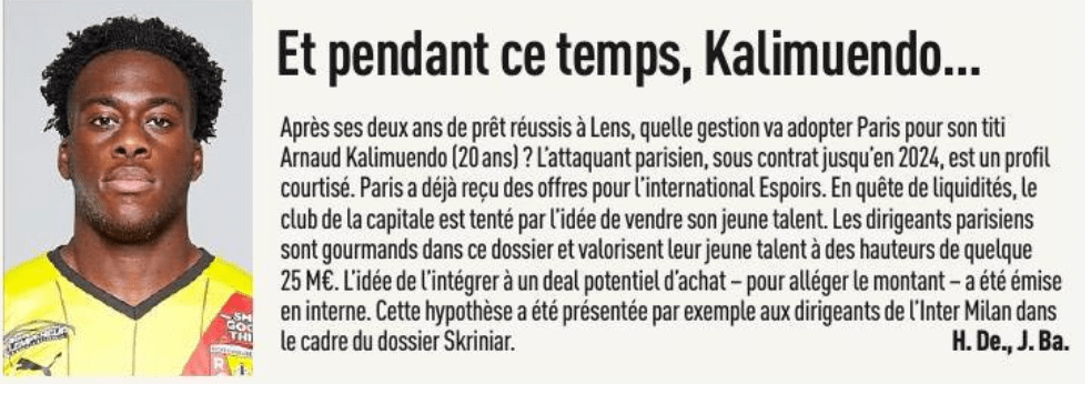 Mais alors, si des attaquants sont visés, c’est que Kalimuendo ne serait pas conservé en cas de belle offre. Cela interroge. Nasser Al-Khelaïfi avait pourtant fait part de son envie de recentrer le PSG autour de la formation. Certains se demandent pourquoi sacrifier Kalimuendo pour aller chercher Scamacca, plus cher et pas estampillé PSG. On peut les comprendre.