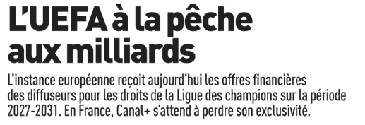 Quant aux droits TV de la Ligue des Champions, les revenus pourraient encore augmenter. La diffusion en France, notamment, pourrait-elle changer de nouveau. On devrait en savoir plus d’ici la fin de la journée, même si tout ne sera pas forcément réglé.