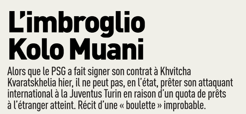 Ce samedi 18 janvier, la presse française (sur l’aspect sportif) s’est concentrée du côté du Paris Saint-Germain sur le déplacement à Lens à 17h dans le cadre de la 18e journée de Ligue 1, ainsi que le mercato avec l’arrivée officielle de Khvicha Kvaratskhelia (attaquant de 23 ans) et le dossier étrangement compliqué du départ de Randal Kolo Muani (attaquant de 26 ans) en prêt vers la Juventus Turin. Alors que Nuno Mendes (latéral gauche de 22 ans) se dirigerait finalement vers une prolongation.
