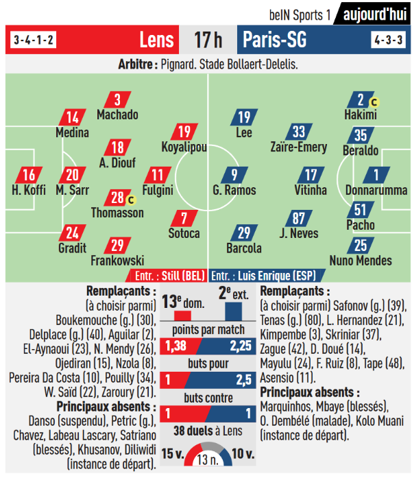 Le PSG a un voyage difficile à Lens, une équipe qui a déjà bien su l’embêter cette saison. Cela avec la réception de Manchester City mercredi prochain en Ligue des Champions qui sera forcément dans les têtes, même s’il faut le montrer le moins possible sur le terrain. Les Parisiens doivent bien aborder ce match intense pour se préparer au mieux, avec une victoire donc.