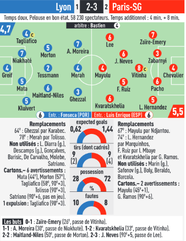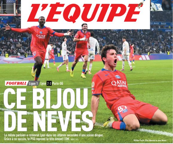 Revue de presse : Lyon/PSG, Neves sauve Paris alors que l’OL fustige l’arbitrage