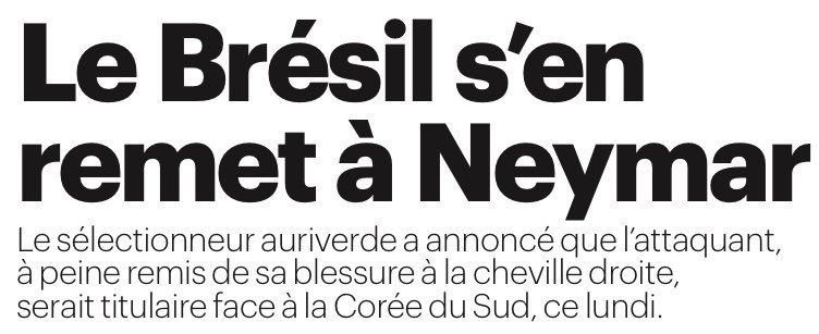Neymar titulaire, ca change tout pour le Brésil. Le numéro 10 est un formidable passeur et un joueur explosif capable de faire mal à n’importe quelle défense. Il reste juste à savoir s’il ne reprend pas trop tôt et s’il n’aura pas de douleur. Il pourrait alors rater le reste du Mondial. Prudence.