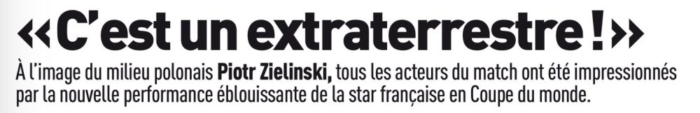 Que faire face à Mbappé ? Pas grand-chose pour les adversaires. Même dans un match dans lequel il n’est pas particulièrement bon (les mots de Deschamps) il trouve le moyen de gagner le match presque à lui tout seul. Il a cette présence offensive qui épuise les défenses mais aussi une envie de marquer l’histoire comme personne d’autres avant lui. Son caractère, objet des railleries et aussi son meilleur allié. Dispensé de travail défensif, il est libre comme jamais, au PSG mais aussi en Équipe de France. Comme quoi, ce n’est pas que l’institution PSG qui permet ca.