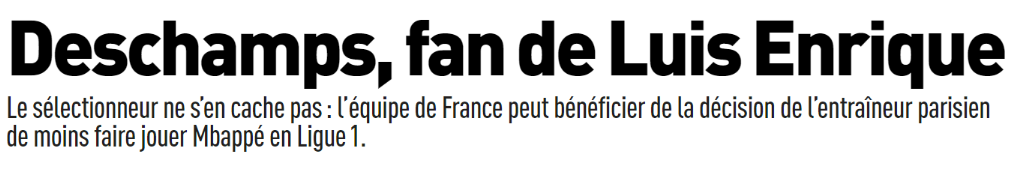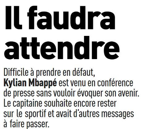 En effet, Mbappé n’a rien dit de particulier en conférence de presse à propos de son avenir. Il s’est amusé un peu à tourner autour. Il a été un peu plus précis à propos des Jeux Olympiques et de l’Equipe de France, sans que ce soit très marquant non plus. Deschamps a lui glissé qu’il apprécie que son joueur ait un peu de fraîcheur. Ce qui va encore à l’encontre de la vague de critiques des médias quand Mbappé n’est pas sur le terrain avec le PSG.