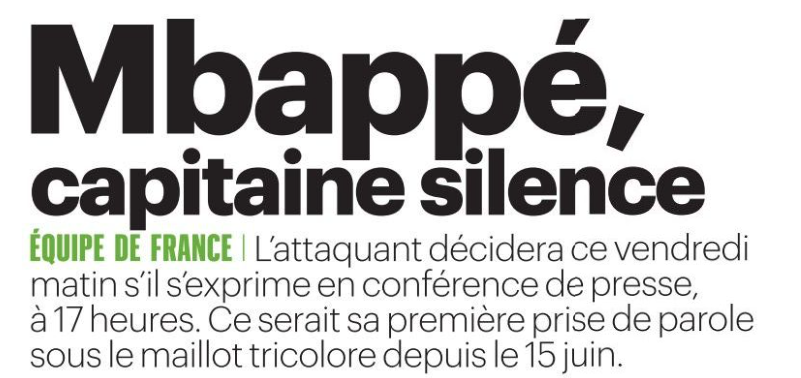 Ce vendredi 17 novembre, la presse française (sur l’aspect sportif) s’est concentrée du côté du Paris Saint-Germain sur 2 joueurs en Equipe de France : Kylian Mbappé (attaquant de 24 ans) et Warren Zaïre-Emery (milieu de 17 ans). Le premier est évoqué car il parle peu à la presse et va choisir s’il vient en conférence ce vendredi à 17h, alors que le second a répondu aux questions hier et a su s’en sortir avec ambition et de bons messages (retrouvez notre article ici).