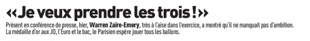 Quant à Zaïre-Emery, c’est sans surprise qu’il s’est parfaitement débrouillé dans cet exercice d’une première conférence de presse avec l’Equipe de France. Il trouve pour le moment le parfait équilibre entre humilité et ambition, parce qu’on sait qu’il est toujours prêt à travailler en dehors des matchs et à tout donner pour le collectif sur le terrain.