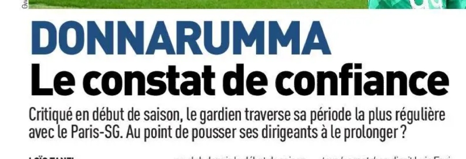 Quant à Donnarumma, après Le Parisien cette semaine c’est au tour de L’Equipe de souligner que Donnarumma réussit une grande saison. Ce qui surprend certains, alors que son talent est loin d’être nouveau. Mais il est plus constant cette saison et évite les erreurs.