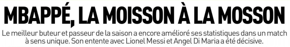 Revue de presse : Paris terrasse Montpellier, Messi, Di Maria et Mbappé au top