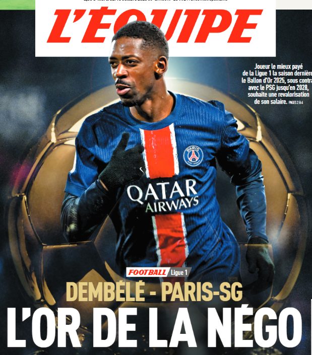 Ce mercredi 15 octobre, la presse française (sur l’aspect sportif) s’est concentrée du côté du Paris Saint-Germain sur des prolongations de contrats à venir (retrouvez le détail à venir), dont Ousmane Dembélé (attaquant de 28 ans) et un Ballon d’Or qui change son statut avec éléments à gérer aussi de son côté. Il y a aussi l’ancien gardien Sergio Rico qui s’est confié, avec des extraits à venir dans la matinée.