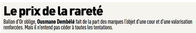 Il y a aussi le dossier Dembélé, dont la situation change avec la saison dernière et le Ballon d’Or remporté. Mais on ne s’attend pas à un blocage. L’attaquant a aussi d’autres négociations à mener en dehors du club avec diverses marques. Attention à ne pas se perdre.
