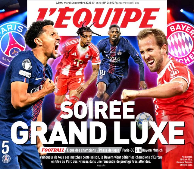 Ce mardi 4 novembre, la presse française (sur l’aspect sportif) s’est concentrée du côté du Paris Saint-Germain sur la réception du Bayern Munich ce soir à 21h au Parc des Princes dans le cadre de la 4e journée de la Ligue des Champions 2025-2026. Un choc très attendu, avec du spectacle promis. Le résultat, beaucoup moins.