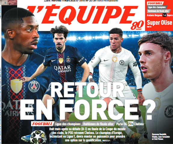 Ce mercredi 11 mars, la presse française (sur l’aspect sportif) s’est concentrée du côté du Paris Saint-Germain sur la réception de Chelsea ce soir au Parc des Princes (coup d’envoi à 21h, diffusion sur Canal+) dans le cadre des 8es de finale allers de la Ligue des Champions 2025-2026 (retour le 17 mars). Un choc attendu qui peut faire basculer la saison parisienne.