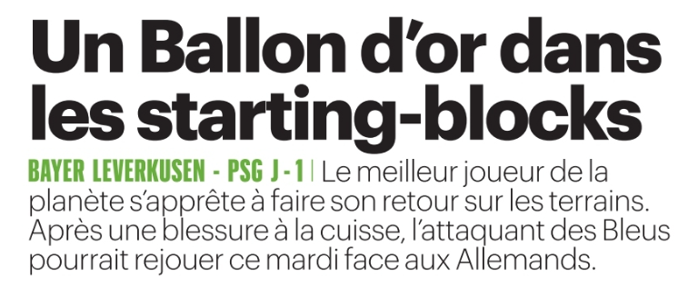 Ce lundi 20 octobre, la presse française (sur l’aspect sportif) s’est concentrée du côté du Paris Saint-Germain sur le match demain contre le Bayer Leverkusen lors de la 3e journée de la phase de ligue de la Ligue des Champions. Une rencontre pour laquelle Ousmane Dembélé (attaquant de 28 ans) devrait être de retour. Il y a aussi la courte victoire des Féminines hier contre Strasbourg (0-1).