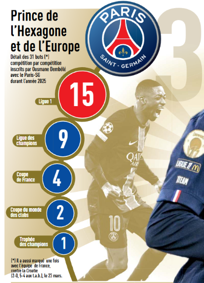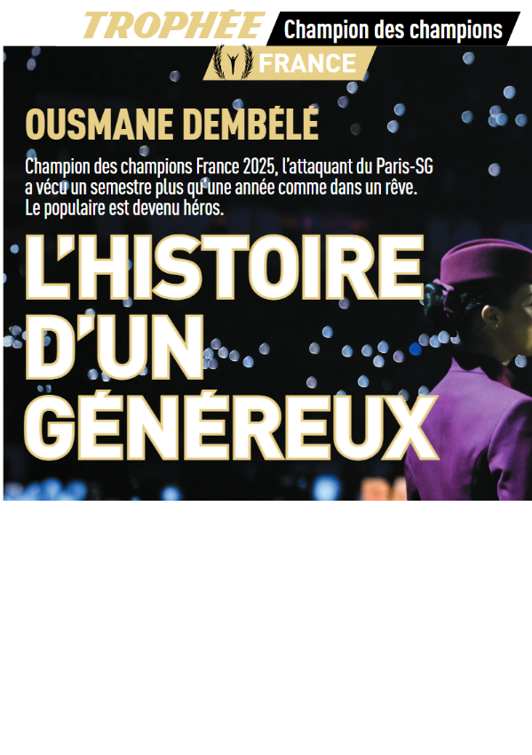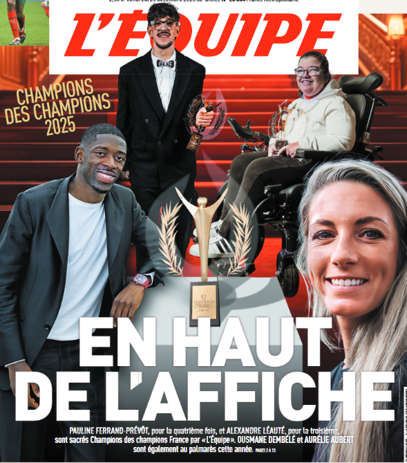 Ce vendredi 26 décembre, la presse française (sur l’aspect sportif) s’est concentrée du côté du Paris Saint-Germain sur rien de direct, mais Ousmane Dembélé, attaquant de 28 ans, a été élu par L’Equipe comme Champions des champions de France 2025 après une année exceptionnelle.