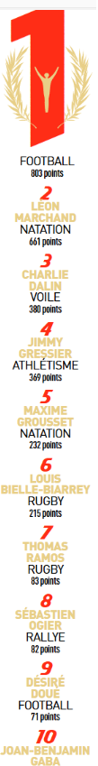 On peut toujours débattre d’un tel classement qui mélange les différents sports, mais on ne veut pas se battre pour les détails. Il est au moins indéniable que l’année 2025 de Dembélé est remarquable. L’attaquant a connu un déclic dans l’efficacité qui lui a permis de franchir le cap tant attendu. Imprévisible avec une aisance des deux pieds, la capacité à dribbler, faire des passes décisives ou tirer de loin, il a semblé impossible à arrêter et a été décisif pour un PSG qui a marqué l’histoire.