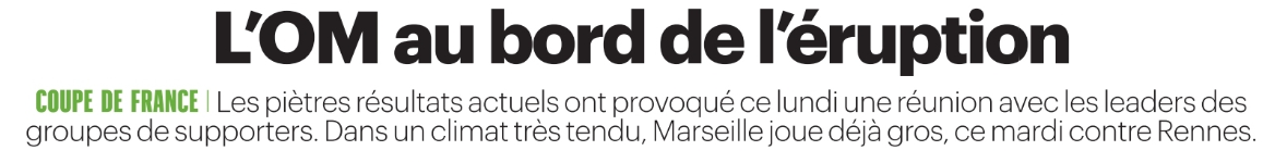 Ce mardi 3 février, la presse française (sur l’aspect sportif) s’est concentrée du côté du Paris Saint-Germain sur peu d’éléments, il y a surtout le 8e de finale de Coupe de France entre l’Olympique de Marseille et Rennes ce soir, avec une certaine tension. Notamment du côté de l’OM, grand rival du PSG et adversaire ce dimanche lors de la 21e journée de Ligue 1. On trouve aussi la reprise compliquée pour Achraf Hakimi (latéral droit de 27 ans) à Paris.