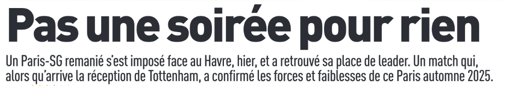 Ce dimanche 23 novembre, la presse française (sur l’aspect sportif) s’est concentrée du côté du Paris Saint-Germain sur la victoire 3-0 contre Le Havre hier soir dans le cadre de la 13e journée de Ligue 1 2025-2026.