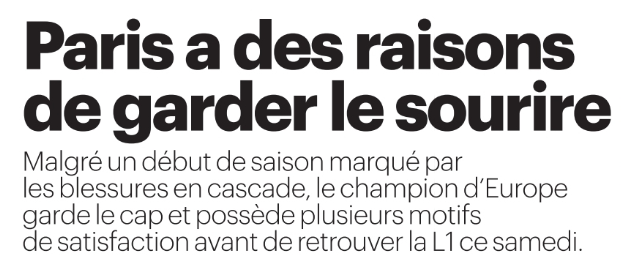 La reprise après la trêve internationale n’est jamais simple, d’autant plus avec la Ligue des Champions quelques jours plus tard (mercredi contre Tottenham en ce qui concerne le PSG). Paris doit se remettre tout de suite dans la compétition, en laissant de côté les émotions de la sélection. Tout en gérant les différentes fatigues. Sans oublier les blessures qui limitent les options.