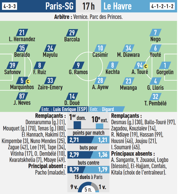 Bien sûr, le PSG est déjà champion et la descente en « intensité » peut être difficile après les quarts de finale de la Ligue des Champions. Mais Le Havre vient au Parc avec la mission d’avancer vers le maintien et donnera le maximum. Les Parisiens doivent donc avoir du répondant pour ne pas vivre un mauvais moment.