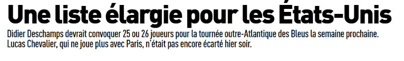 Quant à Chevalier, ce serait bien pour lui de pouvoir rejoindre l’Equipe de France malgré la disparition de son temps de jeu. Une occasion de changer d’air et, peut-être, de jouer un peu. Le sélectionneur Didier Deschamps a déjà eu une telle gestion pour certains joueurs (comme Randal Kolo Muani. Attendons 14h pour les certitudes.