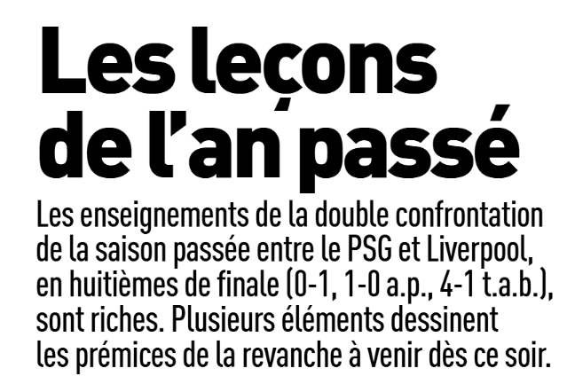 Un peu plus d’un an après un 8e de finale marquant, avec l’aller largement dominé par le PSG mais perdu 0-1 et un retour très disputé qui avait mené aux tirs au but, Paris retrouve Liverpool avec l’objectif de gagner encore la Ligue des Champions. L’approche mentale a bien changé, d’autant plus que le club anglais est dans une période bien plus difficile. Attention, il lui reste de très bons joueurs et la capacité à se sublimer pour une soirée spéciale.