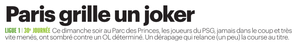 Ce lundi 20 avril, la presse française (sur l’aspect sportif) s’est concentrée du côté du Paris Saint-Germain sur la défaite 1-2 contre l’Olympique Lyonnais hier soir en clôture de la 30e journée de Ligue 1 2025-2026.