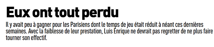 Forcément, la défaite fait mal. C’est toujours le cas dans le sport, encore plus pour un club qui vise toujours la victoire. Il y a aussi le coup d’arrêt dans une période d’euphorie. Attention cependant à ne pas dramatiser soudainement. Le PSG a été moins bien, mais il n’est pas passé complément à côté et les choix du coach Luis Enrique n’ont pas été incohérent.