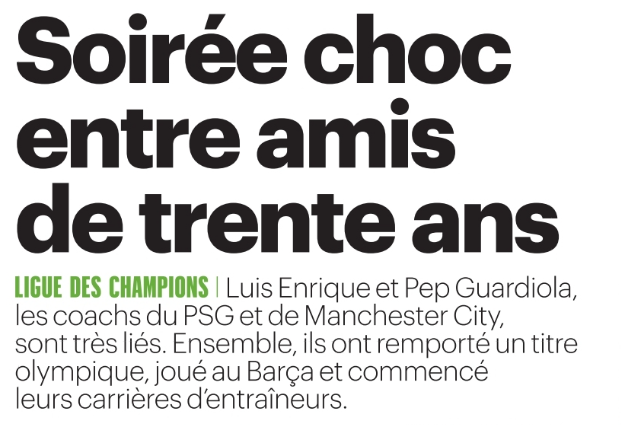 Il y a en plus Luis Enrique et Pep Guardiola qui s’affrontent alors qu’ils sont amis. Ils ont aussi une philosophie du jeu très proche, avec l’envie d’avoir le ballon, de jouer haut et la capacité à innover sur une composition. Que cela soit apprécié ou non. On attend donc de voir les idées de ce soir, ce sera très probablement offensif.