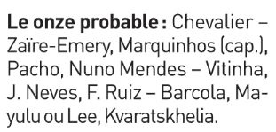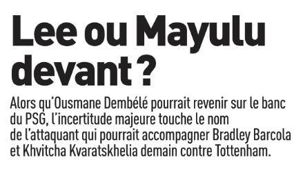 En attendant, il faut jouer ce mercredi contre Tottenham avec un groupe où l’on pourrait retrouver Ousmane Dembélé (attaquant de 28 ans). Mais ce n’est pas encore acquis. On pourrait en savoir plus dans la journée, avec l’entraînement prévu à 11h. On ne s’attend pas à le voir titulaire, même si le coach Luis Enrique sait surprendre. En face, Kolo Muani pourrait démarrer avec l’intention de montrer qu’il aurait pu aider davantage à Paris s’il avait eu plus d’opportunités. Même si cela ne devrait pas changer qu’une place à Paris semble fermée pour la suite.