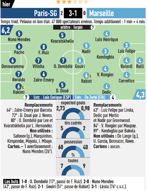 Cependant, les Parisiens n’ont pas souffert très longtemps et ont repris la maîtrise après le 2-1. Ils ont été globalement supérieurs et signent une victoire méritée au bout d’un marathon de 2 mois. Ce qui permet de partir en trêve internationale plein de sérénité et avec une large avance en Ligue 1.